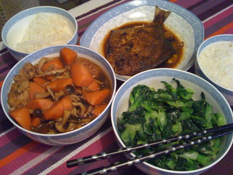 肉圆胡萝卜烧蟹味姑(水放太多,下次半碗水就够烧了)