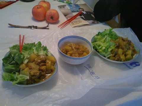 昨天做了咖哩鸡块饭,生菜洗干净切片佐饭。